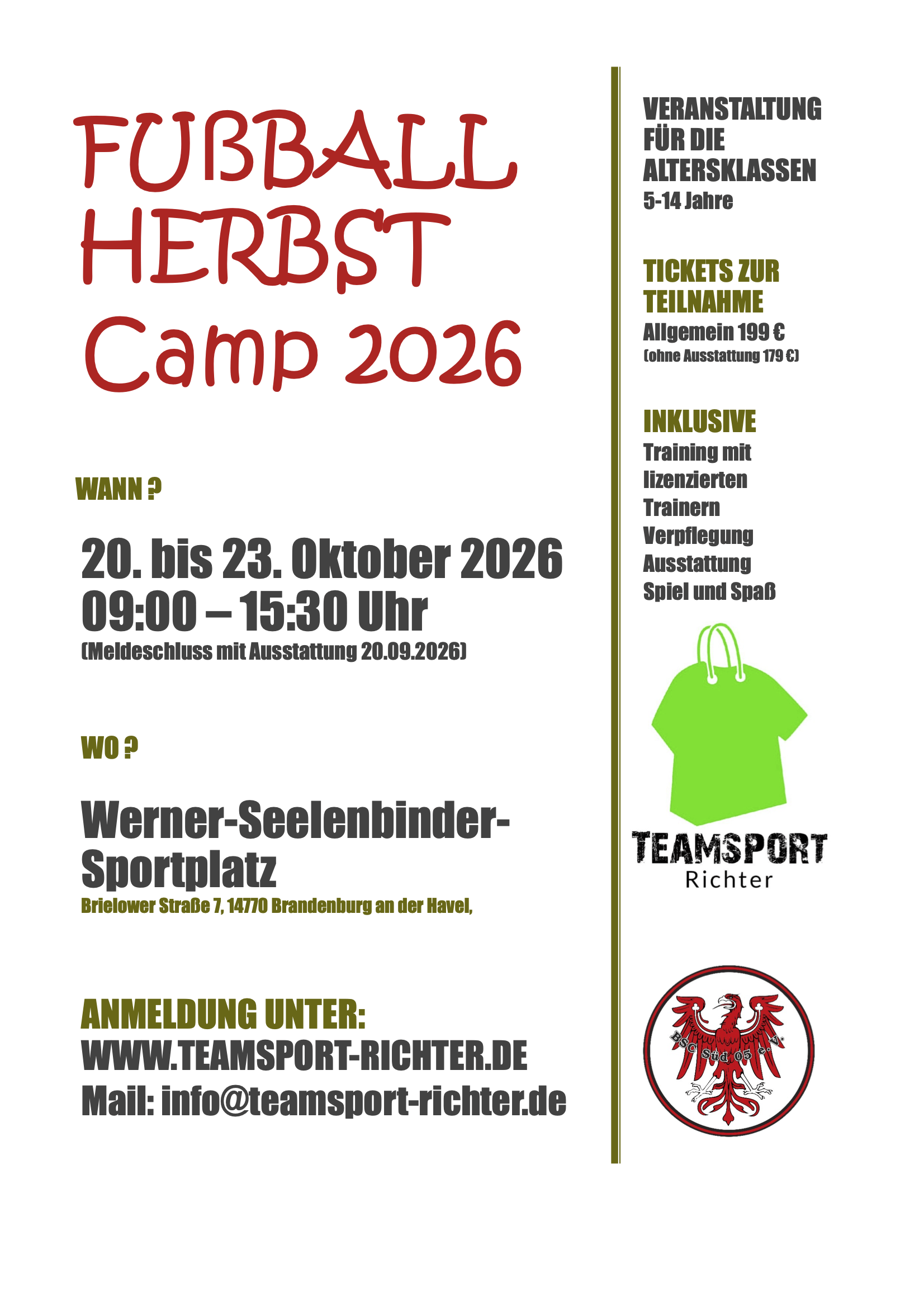 • der Preis für das Camp steht auf dem jeweiligen Camp Flyer